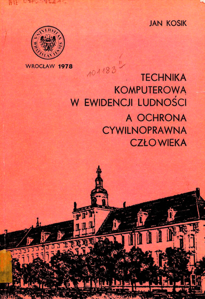 - Kosik, Jan (1978), Technika komputerowa w ewidencji ludności a ochrona cywilnoprawna człowieka.